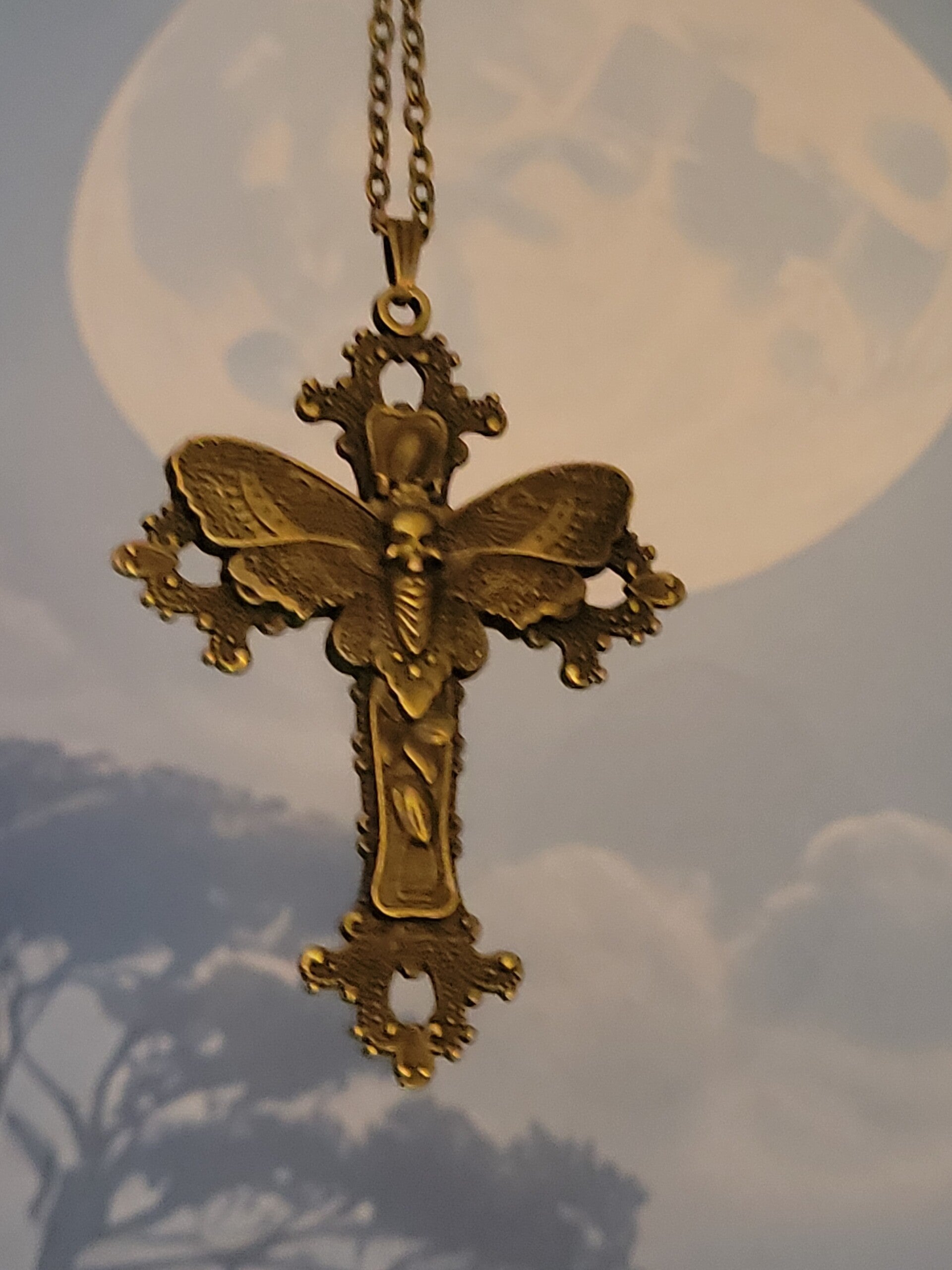 Gothic,Medieval,Castle core cross in antique gold/bronze widest part nearly 2 inchs. longest part nearly 3 inchs ,on a 80cm Antique Bronze chain .will come in a hessian bag with gift tag