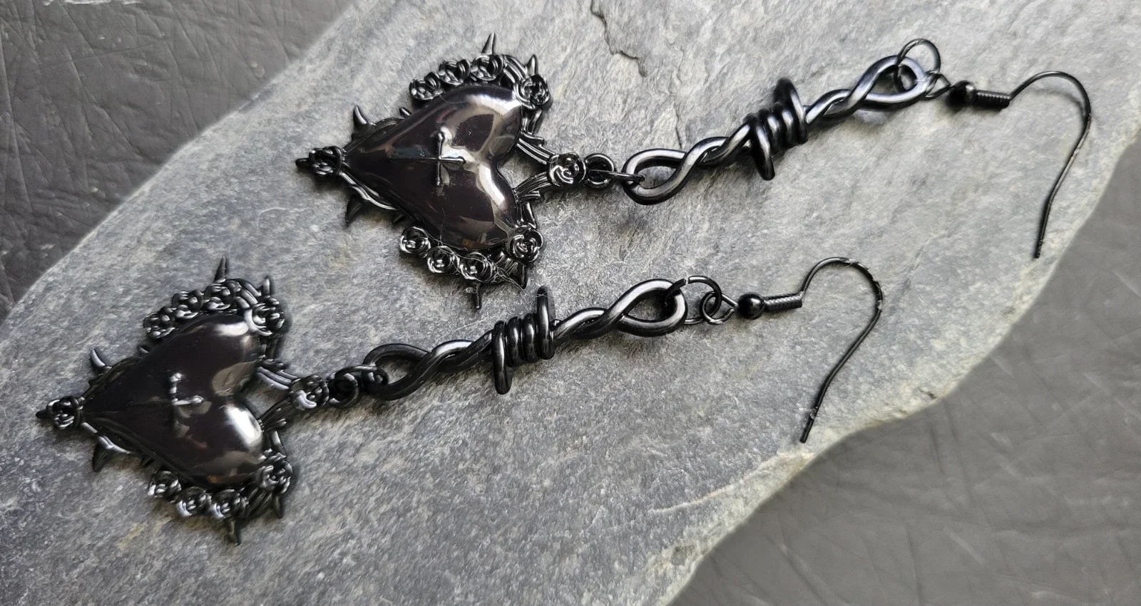 Black Gothic earings on stainless steel hypoallergenic hooks ,perfect for that Goth in your life for Valentines day .comes in a organza gift bag with gift tag.